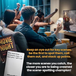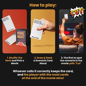 Transforme qualquer noite de cinema em uma aventura interativa com Movie Night, o jogo que mantém todos grudados na tela e prontos para gritar "Cut!" Perfeito para famílias, amigos e amantes de filmes, este jogo rápido é fácil de aprender e infinitamente divertido. Basta embaralhar o baralho, escolher um filme e revezar-se desenhando cartas para ver qual ação assistir. Quando você avistá-lo na tela, seja o primeiro a gritar "Cut!" e reivindique o cartão. Se a ação não acontecer dentro de cinco minutos, passe para a próxima. O jogador com mais cartas no final do filme ganha! Com Movie Night, não há dois jogos iguais. A versatilidade do jogo significa que ele funciona com qualquer gênero de filme, tornando-o o complemento perfeito para reuniões de família, festas ou até mesmo encontros noturnos. Se você estiver assistindo a um filme de ação, uma comédia romântica ou um clássico, a Noite de Cinema adiciona uma camada de emoção e competição amigável que todos podem desfrutar. Adicione um pouco de tempero à sua experiência de assistir a filmes com a Noite de Cinema – onde cada cena pode ser a chave para a vitória! - Experiência envolvente de assistir a filmes – Eleve as noites de cinema em família com Movie Night, o divertido jogo de cartas que mantém todos na beira de seus assentos! - Regras fáceis de seguir – Embaralhe o baralho, escolha um filme e deixe a diversão começar! Os jogadores desenham e leem cartas em voz alta e observem para que a ação aconteça na tela. - Jogabilidade interativa – Seja o primeiro a gritar "Cut!" quando você vê a ação no cartão durante o filme. Chame certo e mantenha a carta – o jogador com mais cartas ganha! - Compatibilidade versátil de filmes – funciona com qualquer gênero ou tipo de filme – basta pressionar reproduzir, acompanhar e ver a chance de gritar "Cut!" - ? Diversão competitiva – Colecione cartas identificando as ações do filme primeiro! Ideal para famílias competitivas e amigos que amam curiosidades sobre filmes e reflexos rápidos. - 🎁 Ótima ideia de presente – o presente perfeito para amantes de filmes, noites de jogos em família ou festas, tornando a Noite de Cinema uma adição única a qualquer coleção.