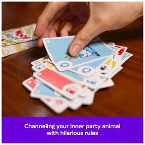 - Regras exclusivas: toda vez que você jogar um animal ou carta colorida, certifique-se de fazer a ação correta – Gato? Miau. Camaleão? Coloque sua língua para fora. Leão? Diga "Sua Majestade", etc. – ou compre mais cartas