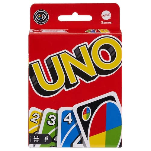 Jogo de Cartas - Uno - 112 Cartas - Mattel Games: o clássico jogo de cartas de combinar cores e números que é fácil de pegar...impossível de largar, agora vem com curingas personalizáveis para maior emoção! Como jogar Uno: • Os jogadores revezam na competição para se livrar de todas as cartas, combinando uma carta da mão com a carta atual mostrada no topo do baralho. • Cartas de ação especiais proporcionam momentos que mudam o jogo e ajudam a derrotar os oponentes! • Utilize a carta Trocar as mãos para trocar cartas com qualquer outro oponente e utilize os 3 curingas personalizáveis (e apagáveis) para escrever suas próprias regras! • Você encontrará 19 cartas de cada cor (vermelho, verde, azul e amarelo), além de 8 cartas Comprar duas, Inverter e Pular em todas as cores, junto com 4 cartas Curingas, 4 cartas Comprar mais quatro, 1 carta Trocar as mãos e 3 cartas Personalizáveis. • Se você não conseguir fazer uma combinação, você deve comprar da pilha central! • Não se esqueça de gritar "UNO" quando tiver apenas uma carta restante! O jogador que se livrar de todas as cartas em sua mão marca pontos por quaisquer cartas que seus oponentes estiverem segurando. • O primeiro jogador a atingir 500 pontos ganha. Informações: • Produto: Jogo Clássico Uno • Marca: Mattel Games • Coleção: Jogos Clássicos • Tipo: Jogo de Cartas • Categoria: Jogos e Tabuleiros • Estilo de Jogo: Estratégia e Raciocínio • Participantes: para 02 a 10 jogadores • Conteúdo: - 112 unidades de cartas - 01 Manual de instruções • Recomendação: para crianças a partir de 07 anos de idade Especificações: • Referência: W2085 • Código de Barras: 746775036720 • Embalagem (C x A x L): 9.5 x 14.5 x 02 cm • Embalagem (Peso): 0.171 kg • Material / Composição: Papel Cartonado • Registro: 000213/2022 • Certificado: Órgãos Autorizados - OCP´S (Organismos de Certificação de Produtos) Aviso: • As imagens são meramente ilustrativas • Os pesos, tamanhos e medidas são aproximados • As cores e estampas dos produtos podem ter variações • As informações são de responsabilidade do fabricante ou fornecedor