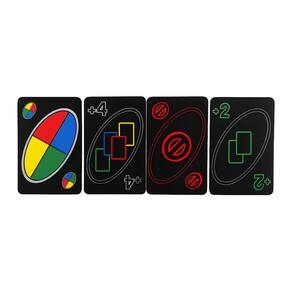 Divertido, estratégico e perfeito para todas as idades, o clássico UNO ganha uma versão moderna com cartas pretas estilizadas e duas cartas curinga exclusivas, tornando as partidas ainda mais emocionantes. Ideal para jogar em família, entre amigos ou em qualquer reunião, esse baralho traz toda a emoção do UNO tradicional com novas possibilidades de jogadas. Conteúdo da Embalagem – Total 110 Cartas O deck é composto por: Cartas Numéricas: - 19x Cartas Azuis (0 a 9); - 19x Cartas Verdes (0 a 9); - 19x Cartas Amarelas (0 a 9); - 19x Cartas Vermelhas (0 a 9). Cartas de Ação (2 de cada cor): - 8x Cartas Comprar Duas (+2); - 8x Cartas Inverter; - 8x Cartas Pular. Cartas Curinga: - 4 Cartas Curinga (Escolher Cor); - 4 Cartas Curinga Comprar Quatro (+4); - 1 Carta Curinga “Trocar as Mãos” – troca sua mão com a de outro jogador; - 1 Carta Curinga Branca – personalizada, você pode criar sua própria regra! Homologação Inmetro: OCP 0061 004993/2021 Marca: Não Informado