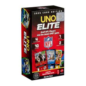 Experimente a emoção de um estádio com o jogo de cartas UNO Elite NFL 2025 Core Edition oficialmente licenciado! Comece a ação com 112 cartas especiais do pacote inicial e intensifique-a com 4 pacotes extras e 2 cartas promocionais. Cada pacote de reforço contém 10 cartas Elite Action, totalizando 40! Mantendo o estilo clássico do UNO, desfrute de novas ações como Skip and Reverse, com jogadores amados da NFL. Com mais de 2.000 cartas Elite Action disponíveis, melhore sua jogabilidade. Quando chegar à carta final, grite: “Hut, hut, UNO!”. Um presente indispensável para entusiastas de jogos de cartas e da NFL, adequado para maiores de 7 anos. As cores e as decorações podem variar.