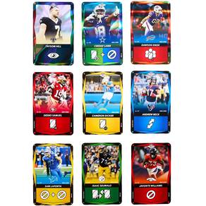 Descrição do produto : " Amplie sua escalação de jogadores da NFL com os kits UNO Elite NFL Booster Sets, oficialmente licenciados! Importante: é necessário ter o Starter Pack, incluso no UNO Elite NFL 2025 – Core Edition (vendido separadamente). Cada kit do UNO Elite NFL Booster vem com 3 pacotes de expansão, contendo 10 cartas de Ação Elite cada, totalizando 30 cartas extras. Quais estrelas da NFL você vai encontrar? São mais de 2.000 cartas de Ação Elite disponíveis para elevar o nível das partidas! Cada carta apresenta um jogador e ativa seu poder especial quando uma carta da mesma cor, com o ícone Elite, é jogada. Alguns pacotes trazem cartas Cor Dupla ou Selvagens. E quando restar só uma carta, grite com tudo: “Hut, hut, UNO!”. É um presente imperdível para fãs de jogos de cartas e da NFL, a partir dos 7 anos de idade. Cada kit é vendido separadamente, sujeito à disponibilidade. Cores e decorações podem variar. Os jogadores podem ampliar sua escalação de jogadores da NFL com os kits UNO Elite NFL Booster Sets, oficialmente licenciados! É necessário ter o Starter Pack, que vem no UNO Elite NFL 2025 – Core Edition (vendido separadamente). Cada kit licenciado inclui 3 pacotes de expansão, com 10 cartas de Ação Elite cada, totalizando 30 cartas surpresa! Quais estrelas da NFL você vai encontrar? Alguns pacotes de expansão podem conter cartas Cor Dupla ou cartas Selvagens que deixam a partida ainda mais imprevisível. Fique de olho nas raras cartas Víbora Selvagem! Cada carta de Ação Elite traz um astro da NFL e ativa um poder especial ao jogar uma carta da mesma cor, com o ícone Elite. Os jogadores podem montar seu próprio time com as cartas de Ação Elite. Os kits Booster aumentam o elenco com mais jogadores e ações poderosas! Símbolos gráficos especiais foram adicionados às cartas para ajudar a identificar as cores, permitindo que pessoas com qualquer tipo de daltonismo possam jogar! : " Detalhes técnicos : Marca: Mattel : Referência: JHG47 : Idade recomendada: 7 : Material: Papel cartão : Ean: 194735330959 : Peso (kg): 0,07 : Dimensões aproximadas da embalagem: 12 x 6 x 2 cm : Inclui: 3 pacotes booster com 10 cartas de Ação Elite cada (30 no total). Produto com oficial oficial. :