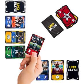 Descrição do produto : " Viva a emoção digna de um estádio com este jogo de cartas UNO Elite NFL 2025 – Core Edition, oficialmente licenciado! A ação começa com 112 cartas especiais do Starter Pack e esquenta com 4 pacotes extras e 2 cartas promocionais. Cada pacote booster inclui 10 cartas de Ação Elite, totalizando 40! A dinâmica segue o estilo do UNO clássico, mas com ações como Pular e Inverter, e com jogadores favoritos da NFL. São mais de 2.000 cartas de Ação Elite disponíveis para elevar o nível das partidas. E quando restar só uma carta, prepare-se para gritar: “Hut, hut, UNO!”. É um presente imperdível para fãs de jogos de cartas e da NFL, a partir dos 7 anos de idade. Cores e decorações podem variar. Escale jogadores da NFL em uma nova versão do clássico UNO, com o Starter Pack de UNO Elite NFL 2025 – Core Edition, oficialmente licenciado! O kit vem com 112 cartas especiais, 4 pacotes booster para expansão com 10 cartas de Ação Elite cada, além de 2 cartas promocionais! A dinâmica segue o estilo clássico do UNO, agora com toda a ação e adrenalina da NFL! Os jogadores só precisam jogar uma carta com o ícone Elite, da cor correspondente, para ativar uma poderosa carta de Ação Elite. E mais: algumas cartas são ainda mais especiais! Símbolos gráficos especiais foram adicionados às cartas para ajudar a identificar as cores, permitindo que pessoas com qualquer tipo de daltonismo possam jogar! Como parte da série UNO Elite, este jogo pode ser expandido com cartas Elite dos pacotes booster. Vendidos separadamente, sujeitos à disponibilidade. : " Detalhes técnicos : Marca: Mattel : Referência: JHG46 : Idade recomendada: 7 : Material: Papel cartão : Ean: 194735330966 : Peso (kg): 0,41 : Dimensões aproximadas da embalagem: 19 x 10 x 6 cm : Inclui: 112 cartas especiais, 4 pacotes booster com 40 cartas Elite, 2 cartas promocionais e instruções. Produto com oficial oficial. :