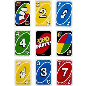 Vamos continuar a festa com o UNO Party! O jogo se inspira no modo clássico, mas com regras especiais projetadas para grupos grandes - de 6 a 16 jogadores! A regra especial "Ponto Obtido", faz com que todos os jogadores apontem para os outros jogadores e, em seguida, cada jogador deve comprar tantas cartas quantos dedos estiverem apontando para ele! A regra especial "Comprar Juntos", une dois jogadores que devem comprar cartas ao mesmo tempo. O Jogo Rápido permite que os jogadores joguem uma carta fora do turno, se forem rápidos o suficiente! A carta Rastreador de Direção ajuda a manter o controle da direção do jogo.