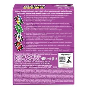 Reúna todos para o Jogo de Cartas UNO Party com a jogabilidade clássica do UNO, além de cartas extras e regras especiais projetadas especificamente para grupos grandes para manter a festa animada Os jogadores ainda combinam cores e números como no jogo clássico, mas há muito mais cartas. Com até 14 jogadores no jogo, as coisas podem ficar barulhentas, loucas e selvagens As regras desta versão farão os jogadores passarem cartas até que alguém não possa jogar, apontando para outros jogadores para comprar cartas e conectando dois jogadores que devem comprar ao mesmo tempo. Fabricante: Mattel Ref.: JJV58 Código Barras: 0194735342402 Idade recomendada: Acima de 3 Anos Dimensões da Embalagem AxLxC : 11X9X4cm Número de Jogadores: 6 a 14 do Vendedor: 7 dias do Fabricante: 3 meses Homologação Inmetro: CE-BRI/ICEPEX-N 01264-25-49 Marca: Não Informado