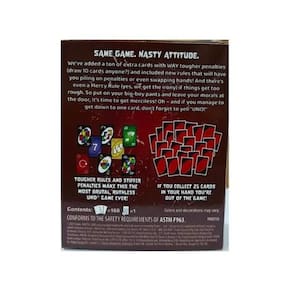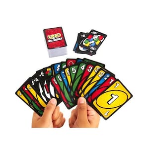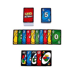 UNO Show Em No Mercy é uma versão brutal e implacável do clássico jogo de cartas UNO Além das cartas de ação padrão como Pular, Reverter e Pegue 2, No Mercy vem com cartas WILD, pegue 6 ou 10, Pule todos, descarte todas e a nova Roleta de cor - uma carta que força o próximo jogador a escolher um cor e depois comprar até obter uma carta dessa cor Além das novas cartas de ação, muitas regras populares da casa foram incluídas nas regras reais O empilhamento é legal 7s trocam e 0s passam de mãos E quando você não pode jogar uma carta, você deve comprar até poder jogar Mas a maior mudança no UNO Show Em No Mercy é a Regra da Misericórdia: - Se você tiver 25 ou mais cartas na mão, será expulso do jogoUNO Show Em No Mercy vem com 168 cartas (em comparação com 112 no UNO padrão)