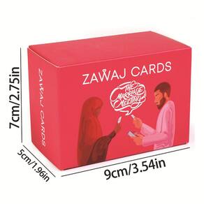 Material: papel Cor: vermelho Tamanho do pacote: 9 x 5 x 7 cm Peso do pacote: 0,25 kg Lista de embalagem: 1 x ZAWAJ Marriage Meeting Card Game (50 cartas) ZAWAJ Cards - The Marriage Meeting: Este envolvente jogo de cartas ajuda casais a se conectarem e aprenderem mais uns sobre os outros de uma forma divertida e perspicaz. Perfeito para recém-casados ou casais que desejam aprofundar seu vínculo. Aprofunde relacionamentos: com 50 cartas exclusivas, este jogo incentiva conversas significativas e ajuda os parceiros a se entenderem melhor, criando conexões mais fortes e promovendo a intimidade. Divertido e perspicaz: os cartões ZAWAJ oferecem uma abordagem divertida para discussões sérias. Joguem juntos e respondam a perguntas instigantes que geram risos e conversas mais profundas sobre casamento e amor. Ideal para recém-casados e casais: se você é recém-casado ou tem um relacionamento de longo prazo, este jogo foi desenvolvido para ajudar os casais a aprenderem mais um sobre o outro, mantendo a conversa fresca e emocionante. Perfeitos para presentear: os cartões ZAWAJ são um presente ideal para o Dia dos Namorados, aniversários ou celebrações de noivado, oferecendo aos casais uma maneira única de construir seu relacionamento enquanto se divertem.
