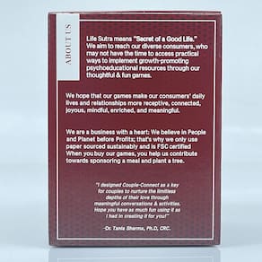 Material: Cor do papel: marrom Tamanho da embalagem: 6,7 × 6,7 × 9 cm Peso da embalagem: 0,30 kg Lista de embalagem: 1 x Conversation Card DeckMeanful Conversation Starters — Este jogo de cartas para casais inclui instruções envolventes projetadas para inspirar um diálogo honesto, ajudando os parceiros a aprofundar a conexão emocional e fortalecer relacionamentos. Perfeito para encontros noturnos ou aconselhamento — Ideal para casais, recém-casados e parceiros de longo prazo que buscam melhorar a comunicação durante encontros noturnos, consultas de relacionamento ou conversas guiadas. Projetado para o crescimento do relacionamento — Instruções cuidadosamente elaboradas ajudam os casais a explorar tópicos importantes da vida, criar confiança, compreender emoções e criar um entendimento mais profundo juntos. Baralho de cartas de alta qualidade — Feito de material de papel durável com impressão nítida e bordas lisas para um embaralhamento confortável, garantindo que os cartões durem em muitas conversas significativas. Ótimo presente para casais — Um presente atencioso para aniversários, casamentos, noivados ou Dia dos Namorados, ajudando casais a construir laços mais fortes por meio de uma comunicação divertida e significativa.