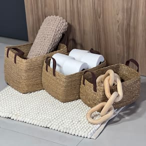 Jogo De Cestos Organizadores Em Fibra Natural E Alça Em Couro Com 3 Peças Wolff -