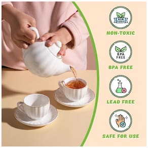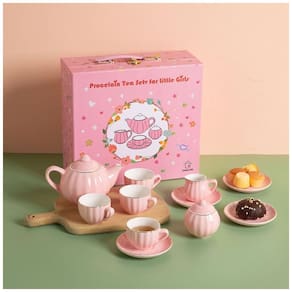Este conjunto de chá de porcelana para crianças de 3 anos é perfeito para brincar de faz de conta com a família ou amigos. Ele inclui 1 bule, 4 xícaras, 4 pires, açucareiro, jarra de creme e um estojo de transporte durável e conveniente. Feito de porcelana real, é seguro e fácil de limpar, sendo compatível com os padrões de segurança de brinquedos ASTM e EN71. O artesanato requintado torna o antiaderente e fácil de limpar, além de ser seguro para usar em máquinas de lavar louça. O design realista e fofo em forma de abóbora estimula a criatividade e inspira brincadeiras de faz de conta, incentivando as crianças a usar sua imaginação e melhorar suas habilidades sociais. Embalado em uma caixa bem embrulhada, é ideal como presente de aniversário, Natal, Páscoa, Ano Novo para meninas e também pode ser utilizado como decoração doméstica quando não estiver brincando. Perfeito para guardar brinquedos, decoração de quarto, festa de chá de aniversário e outras ocasiões temáticas