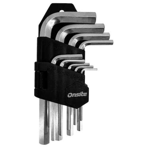 O Jogo De Chave Allen 1/16'' á 3/8'' - 9 Peças 702685 - Onsite, também conhecido como conjunto de chaves sextavadas, é para apertar ou afrouxar parafusos que possuem uma cavidade interna em formato hexagonal na cabeça. Esses parafusos são bastante comuns em diversos tipos de equipamentos e estruturas, tornando o jogo de chaves Allen uma ferramenta versátil e essencial para diferentes aplicações. - Jogo de Chave Allen Hexagonal - 9 Peças: 1/16'', 5/64'', 3/32'', 1/8'', 5/32, 3/16, 1/4'', 5/16'', 3/8. Principais funções e uso do jogo de chave Allen: Manutenção de máquinas e equipamentos: Ferramenta comum em indústrias, oficinas mecânicas e na manutenção de máquinas que utilizam parafusos sextavados, como motores, compressores, e sistemas hidráulicos. Montagem de móveis: Utilizado amplamente na montagem de móveis pré-fabricados, como mesas, cadeiras, e estantes, onde parafusos Allen são comuns. Manutenção de bicicletas: Chaves Allen são essenciais para ajustes em componentes de bicicletas, como selins, freios, e guidões. Uso automotivo: Em automóveis, motocicletas e até em aeronaves, muitas peças usam parafusos Allen para garantir fixação segura e precisa, especialmente em sistemas onde o torque precisa ser bem distribuído. Eletrônicos e eletrodomésticos: Dispositivos eletrônicos e eletrodomésticos, como computadores, impressoras e outros aparelhos, costumam utilizar parafusos Allen pela segurança e praticidade que oferecem na montagem e desmontagem. Sistemas de precisão: Em equipamentos de alta precisão, como câmeras, instrumentos de medição e dispositivos médicos, os parafusos Allen garantem firmeza sem comprometer a integridade do material. Aço CRV - Uso Industrial. Código: 702685. Marca: Onsite. Tamanho: 1/16'' á 3/8''. Ean: 1008306987963.