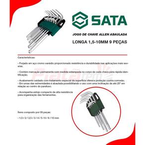 Jogo De Chave Allen 1,5 A 10Mm 09 Peças St09129L Sata