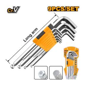Contém:1 Jogo de Chave Allen Abaulada Ingco com 9 peças (1,5mm a 10mm).