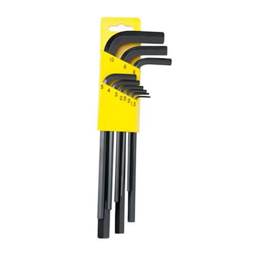 Jogo de chave allen com 9 peças longa 1,5-10mm - eda Jogo de chave allen longa 9 peças eda 1.5 a 10 mm 9gc - marca: eda - código: 9gc - inclui 9 chaves allen: 1.5, 2, 2.5, 3, 4, 5, 6, 8 e 10 mm - comprimento: entre 7 e 17 cm aproximadamente - acompanha suporte - peso bruto: 360 gramas Ean: 7895315012496