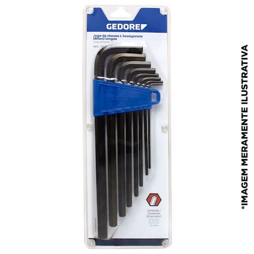 Fabricado em Aço Gedore - Vanadium, sempre utilize a chave L hexagonal (allen) com o perfil de encaixe e a bitola correspondente a bitola do parafuso, para que não haja folga e não danifique a chave e o fixador. Respeite limite de torque estabelecido em norma para cada bitola da chave L hexagonal (allen).