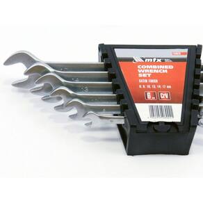 Jogo de Chave Combinada 6 a 17 Cromo Vanádio 154029 Jogo de chaves combinadas boca e estria e 6 a 17 com 6 peças. Resistentes ideal para . Características: - Chaves em aço Cromo Vanádio - Medidas das chaves 6, 8, 10, 13, 14, 17mm - Acompanha suporte de armazenamento - Marca: MTX Matrix Tools for Existence - Ref: 154029 MEDIDAS DO PRODUTO; Altura: 12 cm Largura: 8 cm Comprimento: 23 cm