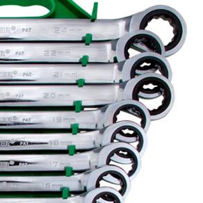 - Composto por chaves de: 8, 9, 10, 11, 12, 13, 14, 15, 16, 17, 18, 19, 20, 21, 22 e 24 mm.
