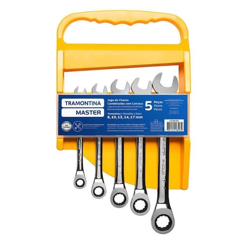O kit de chave combinada catraca com 5 peças TRAMONTINA foi desenvolvido para fornecer máximo desempenho, precisão e segurança em trabalhos de aperto e afrouxamento de parafusos e porcas. Fabricado em aço cromo vanádio forjado e temperado, cada chave garante durabilidade elevada, resistência ao desgaste e confiabilidade mesmo em trabalhos contínuos. O acabamento cromado aliado à catraca fosfatizada proporciona proteção contra corrosão, aumentando a vida útil das ferramentas. Cada peça possui cabeça usinada e catraca com 72 dentes, permitindo acionamento rápido e suave, proporcionando maior eficiência e precisão nas operações.