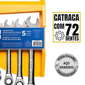 O kit inclui chaves nos tamanhos 8, 10, 13, 14 e 17 milímetros, cobrindo uma ampla gama de aplicações profissionais e domésticas. Seu design ergonômico oferece melhor pegada e controle durante o uso, reduzindo o esforço do operador e aumentando a segurança. A catraca de alta precisão permite reversão fácil e rápida, tornando o trabalho mais ágil e confiável sem danificar os componentes. Este conjunto é ideal para mecânicos, eletricistas, marceneiros, técnicos de manutenção e todos que precisam de ferramentas robustas e precisas para tarefas exigentes.