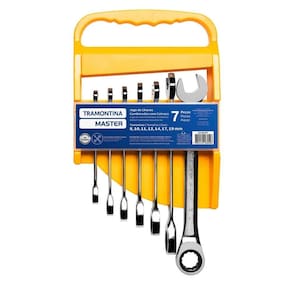 O kit de chave combinada catraca com 7 peças TRAMONTINA foi desenvolvido para proporcionar máxima performance, resistência e precisão em trabalhos de aperto e afrouxamento de parafusos e porcas. Fabricado em aço cromo vanádio forjado e temperado, cada chave garante durabilidade excepcional e resistência ao desgaste mesmo em operações contínuas e exigentes. O acabamento cromado e a catraca fosfatizada aumentam a proteção contra corrosão, preservando a vida útil das ferramentas. Cada chave possui cabeça usinada e catraca com 72 dentes, proporcionando acionamento rápido, suave e seguro, com eficiência máxima em cada aplicação.