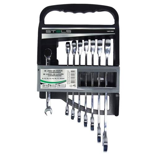 Jogo De Chave Combinada Com Catraca 8 Peças 1451455 Mtx O Jogo de Chaves é muito útil em diversas tarefas tanto para quanto uso industrial, sua variedade de tamanhos torna o trabalho do operador mais prático e fácil, trazendo solução para diversos tipos de problemas. Destinado à manutenção de parafusos e porcas hexagonais.feito de aço cromo vanádio e revestido de cromo-níquel para alta resistência e durabilidade. Chave com cabeça inclinada em 15º para facilitar o uso. Possui catraca reversível, que facilita soltar ou apertar parafusos sextavados em locais de difícil acesso. Indicada para fixar e soltar porcas e parafusos sextavados. - Contém 8 Chaves Combinadas 8, 10, 12, 13, 14, 15, 17 e 19 mm Imagem meramente ilustrativa de 3 meses oferecido pelo fabricante Código: 207263 Ean: 7899612724854 Marca: Não Informado