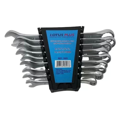 Especificações Técnicas: Marca: Lotus Modelo: JOGO DE CHAVES COMBINADAS (9 PECAS) – Ref: 3955 Medidas: 8, 10, 11, 12, 13, 14, 15, 17 e 19MM Peso: 748 g