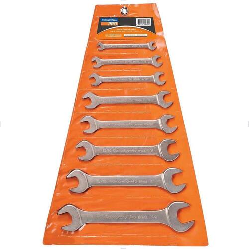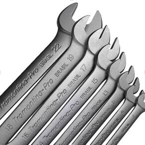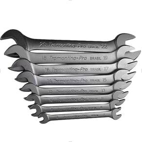 Jogo de chaves fixas 8pçs As chaves de aperto são produzidas em aço ligado com cromo vanádio (Cr-V), e apos submetidas a testes rigorosos de torque para atender a norma DIN 1711-1.