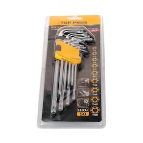 Conjunto completo com 9 chaves de tamanhos variados t10 a t50 Perfeito para profissionais e entusiastas do faça-você-mesmo Ideal para automóveis, bicicletas, eletrônicos e mais Formato em l para maior alavancagem e torque Atende a uma ampla gama de aplicações com eficiência e praticidade