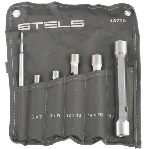 O 1377855 possui 6 peças, composto por 5 chaves tubulares reforçadas com perfil duplo e uma catraca de alta eficiência, com tamanhos mais comumente utilizados: 6x7, 8x9, 12x13, 14x15 e 17x19 mm oferecendo uma solução abrangente para trabalhar com fixadores que exigem aplicação de força significativa.