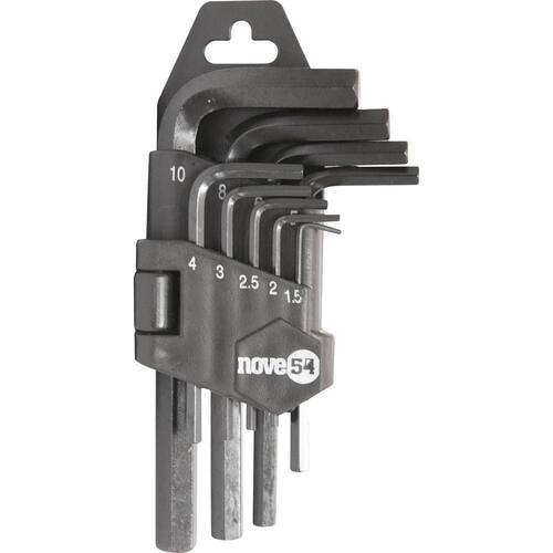 1 Jogo de chaves allen composto por um suporte plástico com 9 peças, sendo: 1,5 mm, 2 mm, 2,5 mm, 3 mm, 4 mm, 5 mm, 6 mm, 8 mm e 10 mm