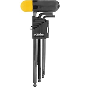 Indicado para apertar e soltar parafusos com sextavado interno, Possui cabo plástico adaptador para melhor transmissão de torque e a ponta abulada confere maior facilidade para trabalhos em locais de difícil acesso,CONTEÚDO DA EMBALAGEM:1 Jogo de chaves allen composto por um suporte plástico com 10 peças, sendo: 1,5 mm, 2 mm, 2,5 mm, 3 mm, 4 mm, 5 mm, 6 mm, 8 mm e 10 mm e 1 cabo plástico adaptadorESPECIFICAÇÕES TÉCNICAS:Material do corpo da chave:Aço cromo vanádioAcabamento da Chave:Fosfatizado pretoTipo da chave allen:Tipo L série longaTipo da ponta da chave allen:Hexagonal com ponta abaulada
