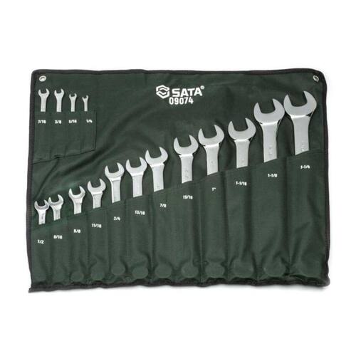 DETALHES Chaves combinadas com estrela em ângulo de 15° para melhor acesso;Catraca com encaixe offcorner para redução de desgaste dos parafusos. Menor desgaste: as chaves não espanam a cabeça de parafusos e porcas. Atende a Norma ASME B107.9M Atende a Norma ASME B107.17 Atende a Norma ASME B107.6 ESPECIFICAÇÕES Comprimento : 45.00 cm Largura : 15.00 cm Especificações DIN : DIN 5236 Tamanho : 1/4 in a 1.1/4 in Especificação ANSI : ANSI B107.13M Altura : 7.62 cm Categoria : Chaves CRV : Sim Unidade de Medida : Imperial Contagem de peças : 16 Material : Aço Cromo-Vanádio (Cr-V) Número de catálogo : ST09074SJ