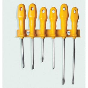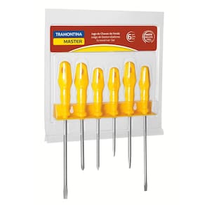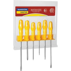 O Jogo de Chaves de Fenda Tramontina Yellow com Suporte 6 Peças traz ferramentas utilitárias que auxiliam em diferentes projetos. São seis chaves de fenda produzidas com materiais de qualidade e bom gosto. O jogo traz 4 chaves de fenda ponta chata e 2 chaves de fenda ponta cruzada, ideais para as necessidades que você encontrar!