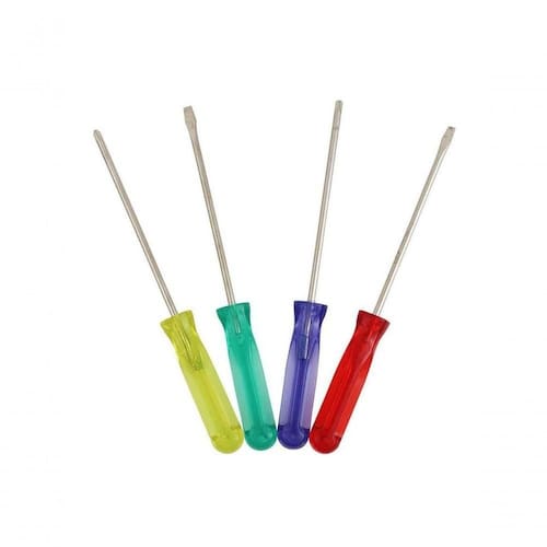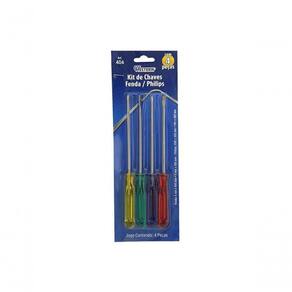 Descricao KIT DE CHAVES FENDA E PHILLIPS COM 4 CHAVES *Imagens meramente ilustrativas. Especificacao Tecnica - Contem 2 Chaves Fendas: 4mm x 100mm e 5mm x 100mm 2 Chaves Philips: PH0 x 100mm e PH1 x 100mm - Tipo de Embalagem: Blister - Dimensoes da Embalagem: 9 x 2 x 26cm (CxLxA) - Quantidade Inner: 50 Pecas - Dimensoes Inner: 27,5 x 21 x 25cm (CxLxA) - Quantidade Master: 100 Pecas - Dimensoes Master: 45 x 29 x 27,5cm (CxLxA) - Material: Aco carbono e AS (Acrilonitrila de estireno) - Cor: Cabo Amarela, Azul, Verde e Vermelho - Marca: Western - Origem: China