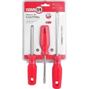 Conteúdo da embalagem: 1 Jogo de chaves de fenda/phillips composto por 3 peças, sendo: 1 chave de fenda 1/4 x 4, 1 chave de fenda 5/16 x 6 e 1 chave phillips 1/4 x 4.