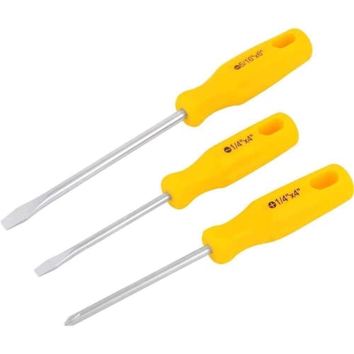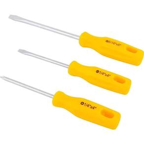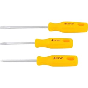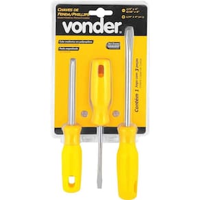 Conteúdo da embalagem: 1 Jogo de chaves de fenda/phillips composto por 3 peças, sendo: 1 chave de fenda 1/4 x 4, 1 chave de fenda 5/16 x 6 e 1 chave phillips 1/4 x 4.
