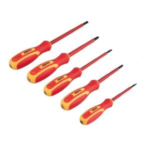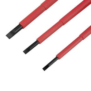 - 1 chave de fenda 0,5 mm x 3 mm; - 1 chave de fenda 0,8 mm x 4 mm; - 1 chave de fenda 1 mm x 5,5 mm; - 2 chaves Phillips PH1 e PH2 ; - Normas: Atende à norma internacional EN/IEC 60900:2004; - Isolamento: Cabo e haste isolados para 1.000 V, garantindo segurança em áreas energizadas; - Testes: Chaves testadas individualmente para assegurar confiabilidade; - Design: Formato anatômico que proporciona melhor manuseio e conforto; - Uso Recomendado: Indicada para fixar e soltar parafusos de fenda e Phillips;
