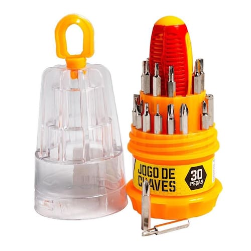 Jogo De Chaves De Precisão 30 Peças Aço Carbono CB2593 Hutz Jogo de Chaves de Precisão 30 Peças Aço Carbono CB2593 Hutz Kit com Jogo de Chaves de Precisão São essenciais para a manutenção de objetos delicados, como consertos de aparelhos de eletrônica, celular, relojoeiro e manutenção em geral Com base imantada para encaixe e 30 bits de diferentes padrões Especificações Marca Hutz Referência CB2593 Composição Aço carbono 45 e Plástico PP Conteúdo da embalagem 01 cabo base 30 pontas em diferentes modelos e tamanhos 01 estojo para guardar o kit Validade: Indeterminada, produto não perecível Dimensões estojo Altura: 120mm Diâmetro:53mm Embalagem Jogo de Chaves de Precisão 30 Peças Aço Carbono CB2593 Hutz 30 Dias Marca: Não Informado Ean: 7908169022303