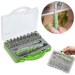 36 pontas de precisão para todos os tipos de parafusos: fenda, Phillips, Torx, estrela, triângulo e agulha.