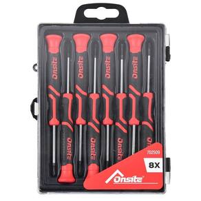 O Jogo de Chaves de Precisão Fenda, Phillips e Torx 702509 - Onsite, é ideal para trabalhos que exigem alta precisão. No conjunto de chaves contém 8 peças, sendo 3 chaves fenda 1.5 mm, 2 mm, 2.5 mm , 3 chaves Phillips 000, 00, 0 e 2 chaves Torx T-6, T-7 , cada uma delas possui cabo emborrachado proporcionando conforto durante o uso; Além disso, contam com pontas magnéticas, facilitando a manipulação de parafusos pequenos.