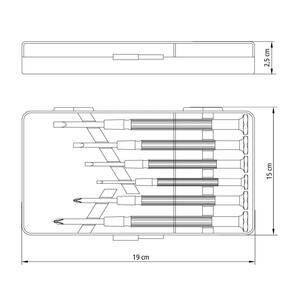 Com o Jogo de Chaves de Precisão Tramontina 6 Peças os problemas de reparo estão solucionados! São 6 chaves de fenda: 4 com ponta chata e 2 com ponta cruzada. São ferramentas perfeitas para auxiliar você nas atividades do lar. Apertar e afrouxar parafusos nunca foi tão fácil! Orientações Haste em aço cromo vanádio.Acabamento fosfatizado.Possui cabeça giratória para facilitar o manuseio com apenas uma das mãos.Acompanha estojo plástico para guardar as chaves.As hastes das chaves de fenda são testadas em máquinas de ensaio específicas, para verificar o perfeito balanço entre resistência mecânica e dureza.Cabos injetados com material de alta resistência.Os dimensionais das pontas são verificados com gabaritos-padrão, calibrados e certificados.As ferramentas são produzidas y testadas conforme normas específicas.Conteúdo: 4 chaves ponta chata 1.4, 2, 2.4, 3 mm; 2 chaves ponta cruzada nr. 0, nr. 1. Observações Use óculos, luvas e outros equipamentos de proteção de acordo com a tarefa a ser executada. Utilize chaves de fenda isoladas, identificadas pela marcação 1.000 V, quando for necessário trabalhar em locais com corrente elétrica. Importante: nestes casos, inspecione a integridade da isolação elétrica, e, se aparecerem trincas na isolação, suspenda o uso imediatamente. Utilize chaves com ponta adequada para cada tipo de fenda, para realizar a tarefa de forma mais rápida e segura. Respeite o torque estabelecido por norma para cada bitola. Não utilize as chaves de fenda como formão ou alavanca. Não altere as dimensões originais da ponta para obter outro perfil. Armazene em local limpo e seco. Características Gerais EAN13 7891114047738 DUN14 17891114047735 NCM 8205.40.00 Peso Líquido 0,1000 kg. Peso Bruto 0,1000 kg. Metragem 0,000499 m³. Dimensões Embalagem (Compr. X Larg. X Alt.) 190x 105x 25 mm. Dimensões Produto (Compr. X Larg. X Alt.) 190x 105x 25 mm.