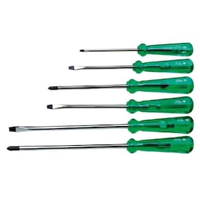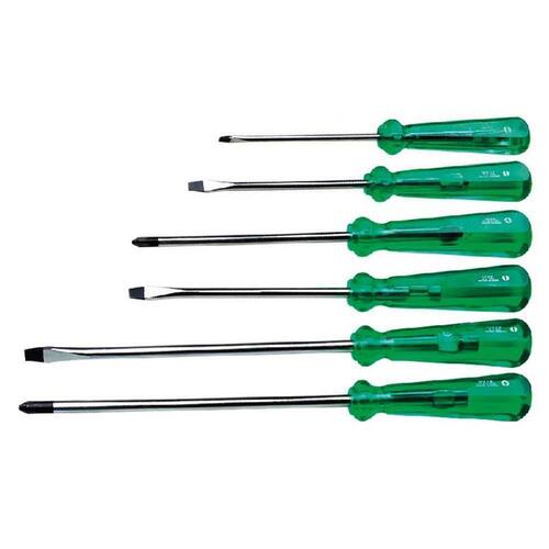 Chave de fenda 3/16'' x 3''. Chave de fenda 1/4'' x 4''. Chave de fenda 1/4'' x 6''. Chave phillips 3/16'' x 3''. Chave phillips 1/4'' x 4''. Chave phillips 1/4'' x 6''.
