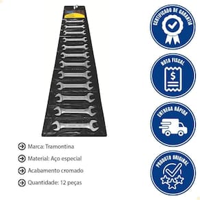 - Tenha praticidade e durabilidade nas suas mãos com o Jogo de Chaves Fixas Tramontina Basic 12 peças.