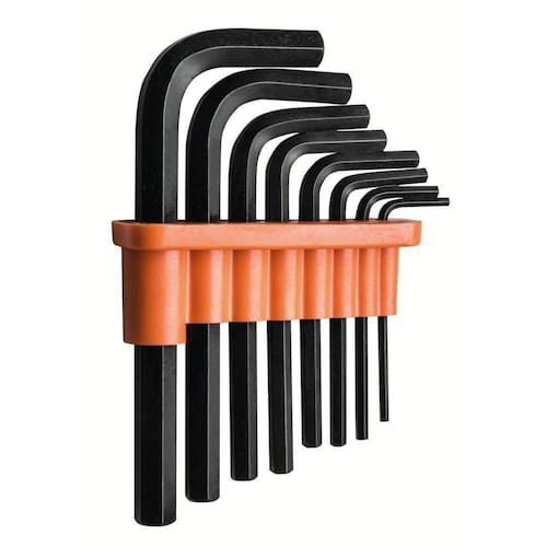 Haste em aço cromo vanádio temperada.Acabamento fosfatizado.As chaves tipo L ou Cabo T são submetidas a ensaios de torque e de dureza para analisar a resistência mecânica e atender aos valores da norma específica.Grande variedade de formas, perfis de pontas e comprimentos para as diversas aplicações automotivas e industriais.As chaves tipo L possuem dois braços de comprimentos diferentes, e ambas extremidades podem ser utilizadas dependendo do local onde será realizado o trabalho. Ao utilizar o braço mais longo tem-se mais torque, enquanto o braço mais curto promove uma operação mais rápida.Apertar ou afrouxar parafusos com sextavado interno.As ferramentas são produzidas e testadas conforme normas específicas.