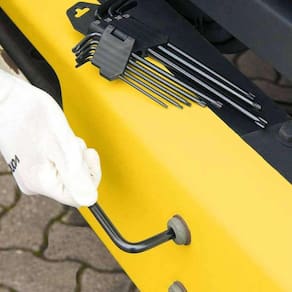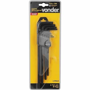1 Jogo de chaves hexalobular longas, composto por um suporte plástico com 9 peças.