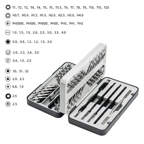 60 pontas de precisão: Parafusos de todos os tipos e tamanhos, incluindo fenda, Phillips, Torx, estrela, triângulo e agulha. Cabo ergonômico: Para maior conforto e controle durante o uso. Estojo compacto e organizado: Para manter todas as suas chaves em um só lugar. Feito de aço de alta qualidade: Durável e resistente, pronto para lidar com os reparos mais desafiadores.
