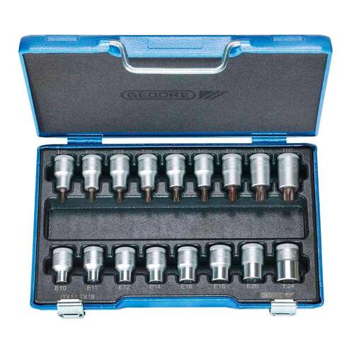 Jogo de Chaves Soquete Torx 17 Peças T20 à T 60 e E10 à E24 - Gedore 024795