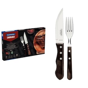 Jogo De Churrasco Inox Jumbo Tramontina Polywood Castanho 12 Peças Talheres de qualidade deixam sua mesa muito mais convidativa. Um exemplo é a linha Polywood que, com seus cabos de madeira tratada, faz bonito em encontros mais informais. Recomendações de Uso: - Tenha cuidado ao manusear produtos cortantes e perfurantes e mantenha-os fora do alcance de crianças.- Para garantir a durabilidade dos produtos, recomenda-se secá-los bem após a lavagem, mesmo sendo em máquina de lavar louças.- Foto meramente ilustrativa. Informações Adicionais: