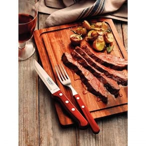 Jogo De Churrasco Jumbo Tramontina Cabo Polywood Vermelho 12 Peças O churrasqueiro é sempre o último a sentar à mesa. Mas para garantir que os convidados também tratem o assado com respeito, nada melhor do que escolher os talheres certos, para isso a linha Churrasco da Tramontina. Recomendações de Uso: Modo de uso: antes da primeira utilização, remova as eventuais etiquetas e lave usando apenas uma esponja macia, sabão ou detergente neutro. Outros tipos de produtos, como palha de aço, poderão riscar ou prejudicar o acabamento da peça. Enxágue cada item a fim de remover totalmente os resíduos dos produtos de limpeza, que, por serem abrasivos, podem danificar o inox. Após a lavagem enxaguar e secar bem a peça, caso contrário, as substâncias químicas da água (cloro) poderão causar manchas. Para maior durabilidade dos produtos recomenda-se secar bem antes de guardar. Evite atrito entre as peças durante o processo de lavagem e no armazenamento, para mantê-la sem riscos.- Tenha cuidado ao Manusear produtos cortantes e perfurantes e mantenha-os fora do alcance de crianças.- Foto meramente ilustrativa. Informações Adicionais: