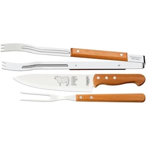 Nada como produtos que tornam os momentos com a família e os amigos ainda mais especiais. Com o Jogo para Churrasco Tramontina com Lâminas em Aço Inox e Cabos de Madeira Natural 3 Peças você irá servir as melhores carnes de um jeito prático e saboroso. São três peças ideais para levar bom gosto e sofisticação à este momento. Com lâmina em aço inox, a faca de oito polegadas possui maior durabilidade do fio devido ao tratamento térmico. O garfo e pegador contam com maior espessura e uma estampagem do aço que garante maior resistência, evitando deformações. São peças com cabo de madeira natural que deixam a mesa do churrasco ainda mais bonita.